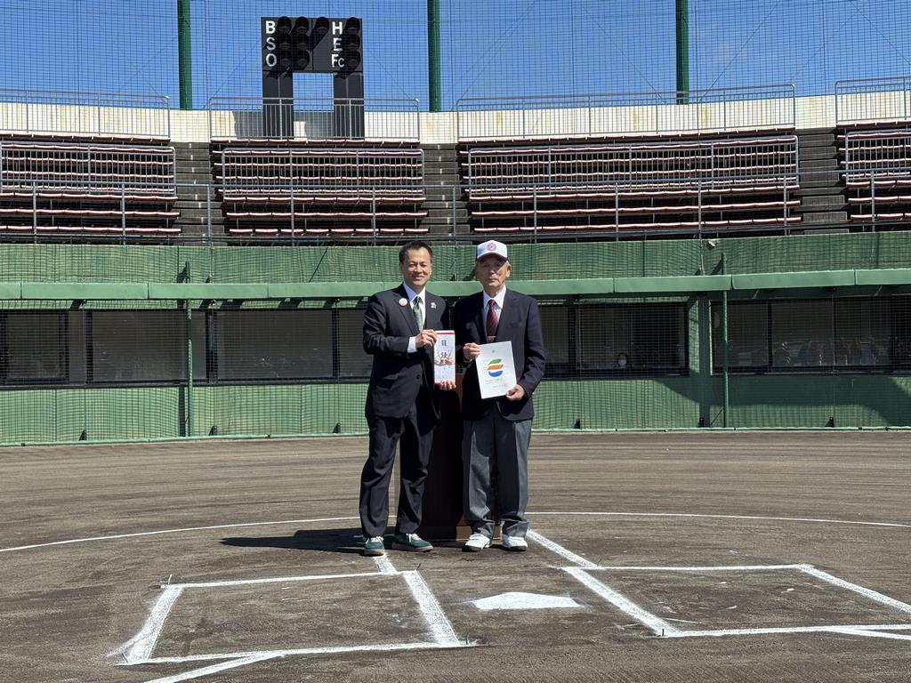 福井県還暦軟式野球連盟様ならびに丹南古希クラブ様からグラウンドレーキをご寄附いただきました!