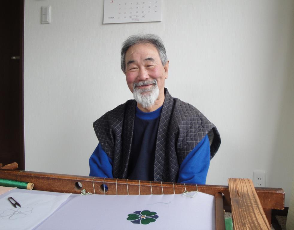 43歳より不況の為サラリーマン生活を送りながら刺繍を続け、昭和50年福井県へ移る。定年退職後、本格的に再開。