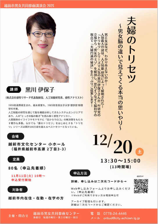越前市男女共同参画講演会 2025 録画配信のみ受付中(市ホームページ)