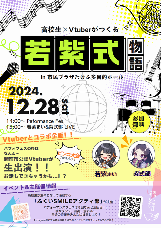 内 容:若者よるパフォーマンス、Vtuberのライブなど越前市を盛り上げるイベントの開催