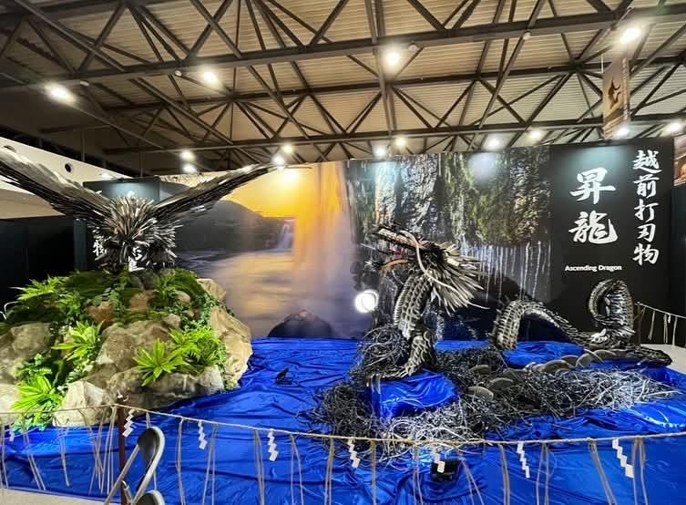 共同で出展した三木市の三木金物「金物鷲」と越前打刃物約3,000点を用いた「昇龍」は、それぞれ堂々たる存在感を放ち、二つの工芸のまち・ものづくりのまちから持ち寄った技と魂が響き合う空間が創られた。「昇龍」を前に足を止め、写真を撮り、越前打刃物の歴史や千代鶴国安の龍の夢の伝説に耳を傾ける多くの来場者の様子を大変うれしく思った。