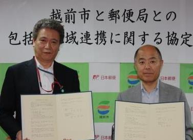 越前市と仁愛大学は、相互の人的・知的資源の交流と物質資源の活用を図り、包括的な連携のもと教育、文化、福祉、地域産業、まちづくり等の分野において相互に協力し、地域社会の発展と人材育成に寄与することを推進するため、地域連携協定を締結しています。