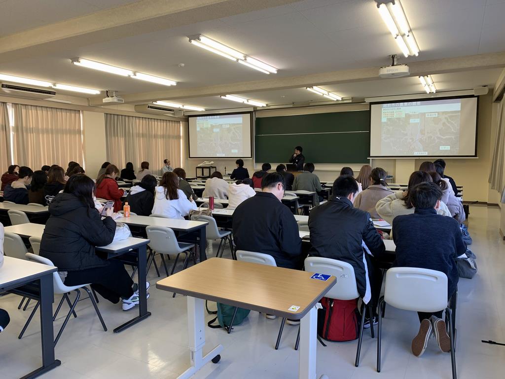 仁愛大学「ふくい総合学」にて、越前市職員が講義を行いました。10月から開催しておりました「ふくい総合学」が本日最終日で、農政課・子ども福祉課・長寿福祉課の職員が市の取組み等についてお伝えしました。