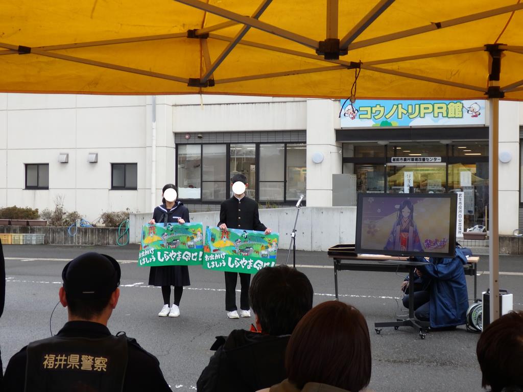 出発式では、地域の方や武生第五中学校の生徒の皆さんなど、多くの方が参加しました。