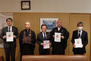 令和7年1月10日に、武生佛教会様、丹南芸術家協会様、北陸電力株式会社丹南支店様から、三者主催で令和6年12月7日から12月14日にかけてふるさとギャラリー叔羅にて開催された第50回歳末チャリティーオークションの収益金のうち63,670円を、福祉基金にご寄附いただきました。