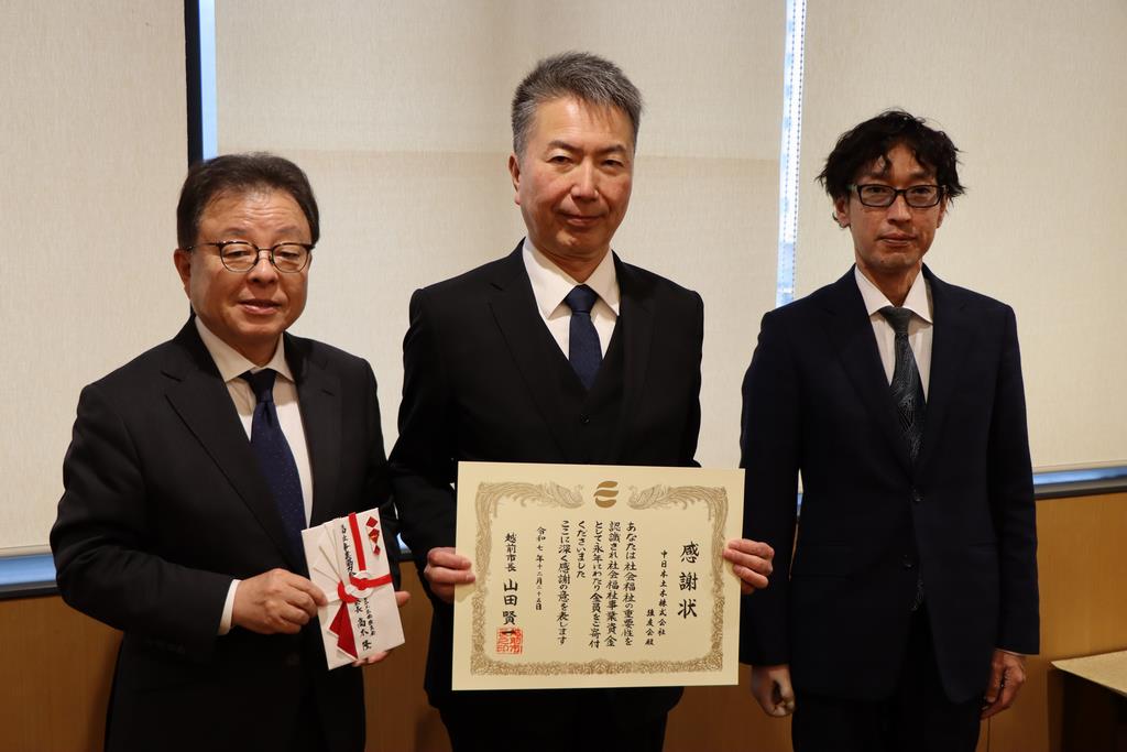 令和7年12月25日に、福井村田製作所労働組合様及び中日本土木株式会社強友会様から、福祉基金へそれぞれ10万円のご寄附をいただきました。