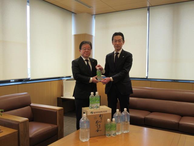 また、本市と災害時相互応援協定を締結している七尾市への支援として飲料水を贈呈いただきました。