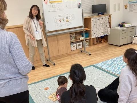 児童発達支援センターなないろの理学療法士から、感覚や運動についてのお話を聞きました。全身運動や微細運動が、どんな感覚を刺激しどんな効果があるかなどをとても分かりやすく教えていただきました。また、身近にある新聞やシールを使った手軽な遊びも教えていただきました。今年度のふらっと広場は今回で最後となりました。次年度も開催予定です。楽しみにお待ちください。