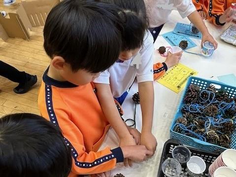 国高幼稚園の園児が、国高小学校1年生のおもちゃランドに招待されました。秋の自然物を使ったいろいろなゲームコーナーを1年生とペアでまわり、楽しみました。次回は幼稚園に1年生を招待するそうです!