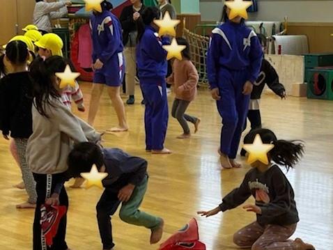 神山小学校の5年生が神山認定こども園の5歳児と遊びました。今回は2回目で、5年生が中心になって進めました。ドッジボール、しっぽ取り、サッカー、大縄跳び、新聞じゃんけんなど、いろいろな遊びを楽しみました。お別れには、5年生から「1年生になって学校に来てくれるのを楽しみに待っているよ~」との言葉がありました。