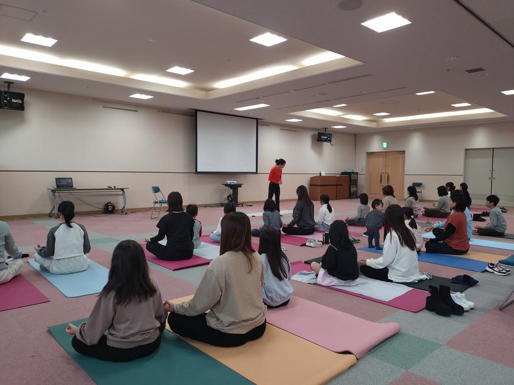 | 9時15分~10時 | 多目的ホール | 親子ヨガ~自律神経を整えよう~ ※事前予約 講師 KULA yoga studio 代表 辻岡 桐子 氏 対象 小学生とその保護者 定員 30 組 持ち物 ヨガマット、バスタオルなど 申込方法 健康増進課へ電話または二次元コードから 申込URL:https://forms.office.com/r/fk84LGPMAf |