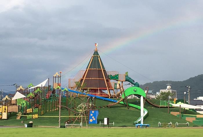 コウノトリ広場は、絵本「コウノトリのコウちゃん」をモチーフにした広場。多くの方に愛されてきた観覧車は新たなシンボル遊具「コウノトリの大冒険」として生まれ変わりました。