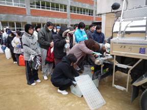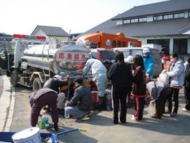 平成23年3月11日に発生した東日本大震災の支援のため、水道課・料金課では給水車(2トン)と職員計12名を派遣し、給水活動を行いました。