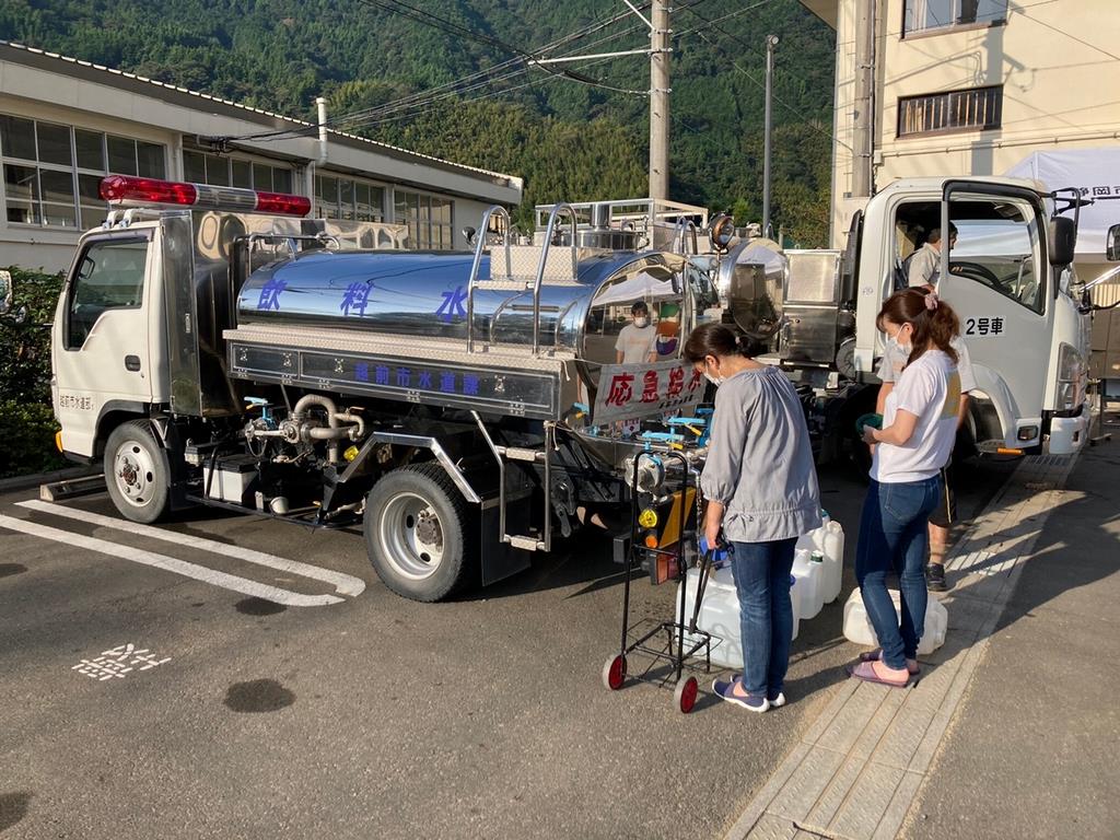 令和4年9月23日に発生した静岡市清水区の豪雨災害のため、水道課では給水車と職員2名を静岡市清水区へ派遣し、給水活動を行いました。