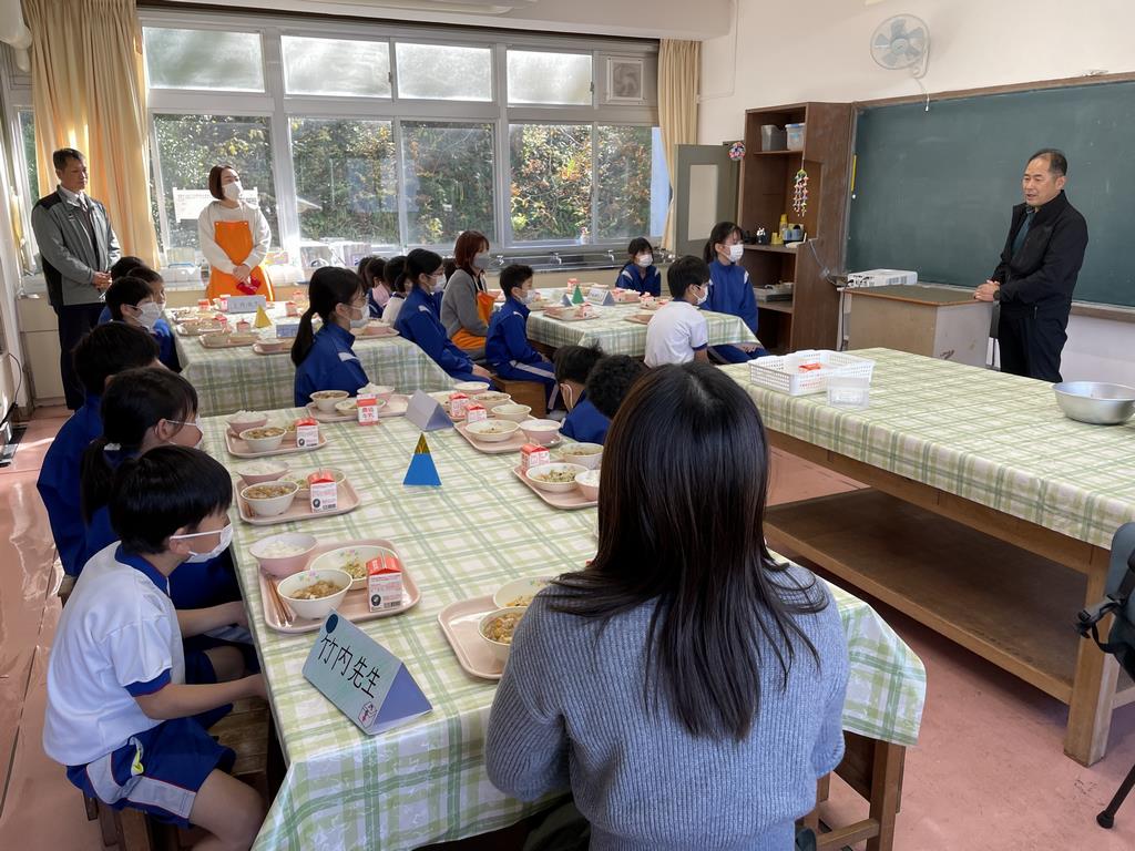 坂口小学校では、提供初日に生産者(コウノトリ呼び戻す農法部会会長 上野和美氏)からの講話の時間を設け、上野会長自身も関わった50年前の傷ついたコウノトリとの体験や厳しい有機農業を続けている生産者としての思いなどについてお話しいただき、その後子ども達と一緒に給食を味わいました。