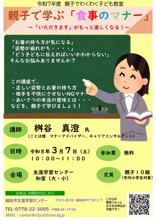 令和7年度親子でわくわく子ども教室「親子で学ぶ食事のマナー」を開催します!