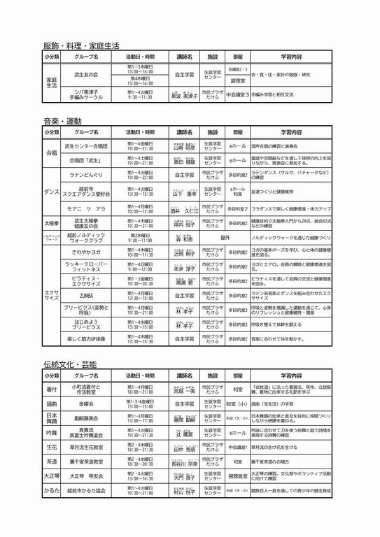 最終更新日 2026年4月2日 情報発信元 生涯学習センター 生涯学習センター 自主学習グループ PAGE-ID:899 令和8年度自主学習グループ 現在、23種類のジャンルで43団体が自主学習グループとして学習活動を行っています。 各自主学習グループでは、一緒に活動する仲間を募集しています。 (※一部のグループは、定員に達しており、募集は行なっておりません。詳細は一覧表をご確認ください。) ご連絡をお待ちしております。 入会・内容に関するお問合せ:越前市生涯学習センター(電話:0778-22-3005) 令和8年度自主学習グループ一覧表はこちら↓ ※令和8年4月1日現在 添付ファイル ★令和8年度自主学習グループ一覧(PDF形式 468キロバイト) 閲覧ソフト Acrobat Reader DC 印刷