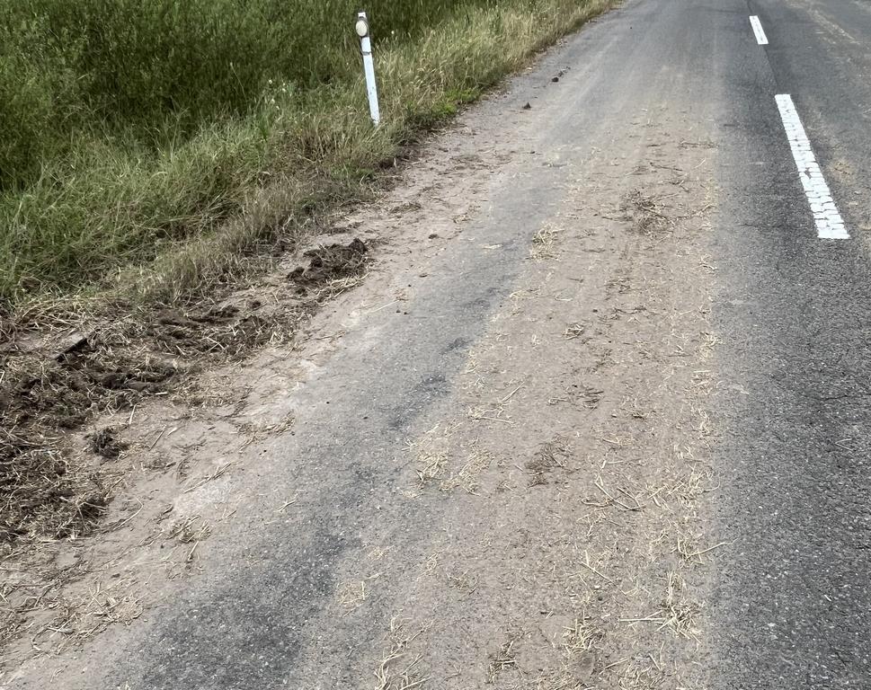 田や畑でトラクターやコンバイン等の農業機械を使用後、公道に出る際は、必ず泥を落としてから走行するようにお願いします。
